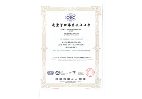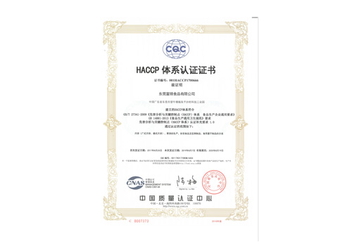 HACCP體系認證證書